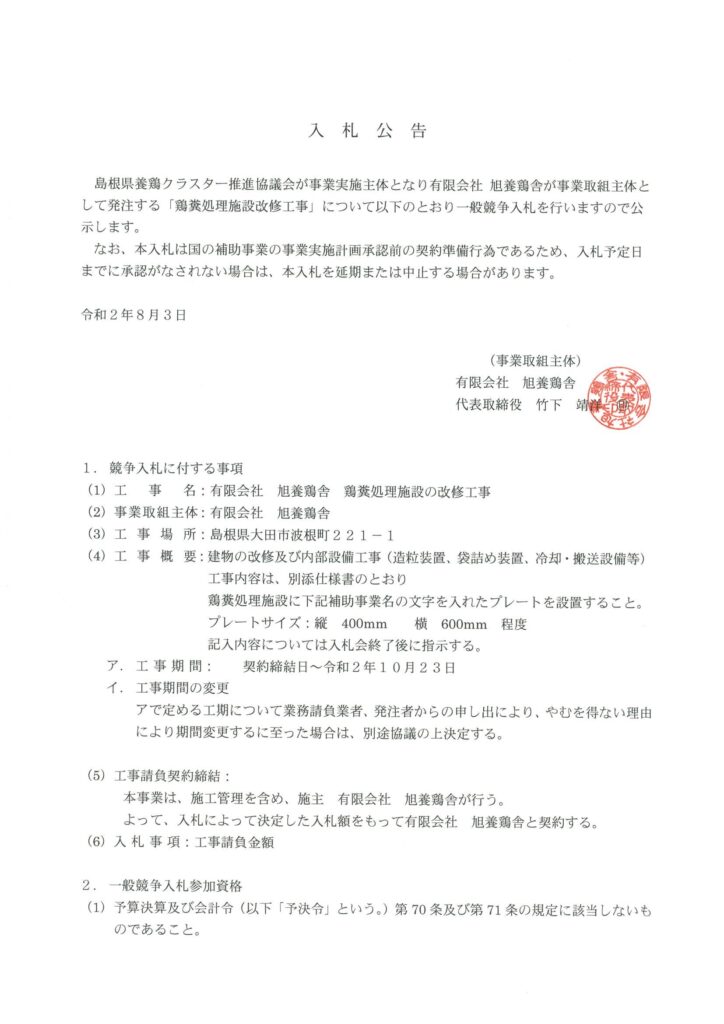 - 事業取組主体: 有限会社 旭養鶏舎